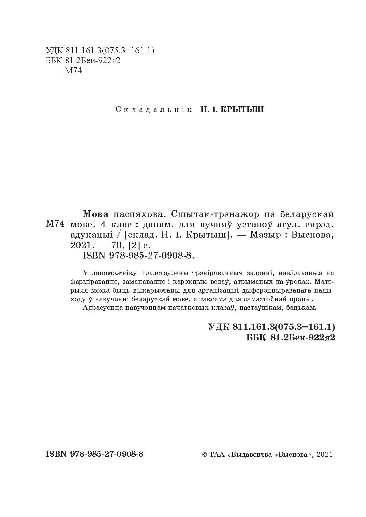 Мова паспяхова. Сшытак-трэнажор па беларускай мове. 2 клас / [аўт. Н.А. Красуцкая]