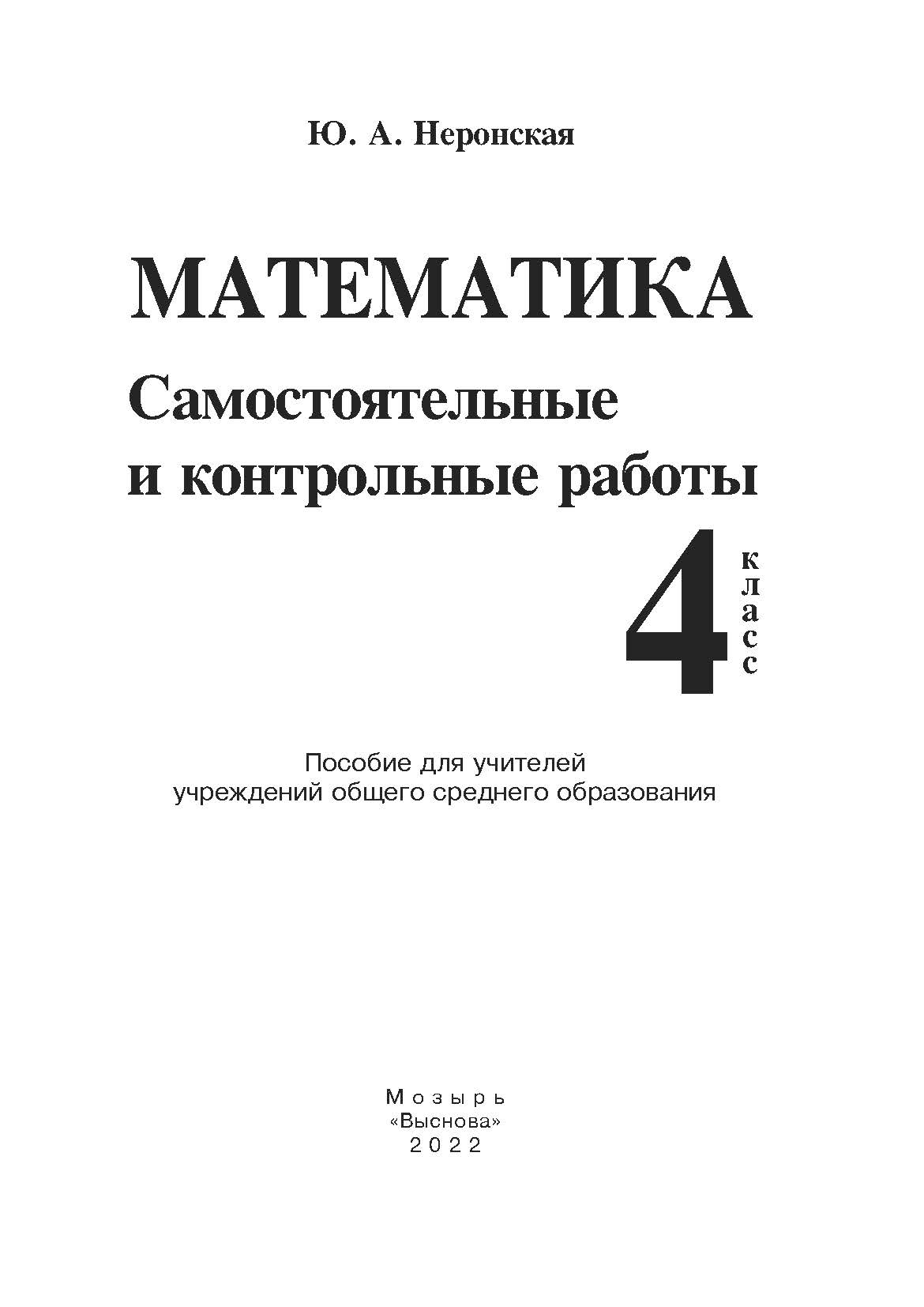Математика. Самостоятельные и контрольные работы. 4 класс / [авт. Ю.А. Неронская]
