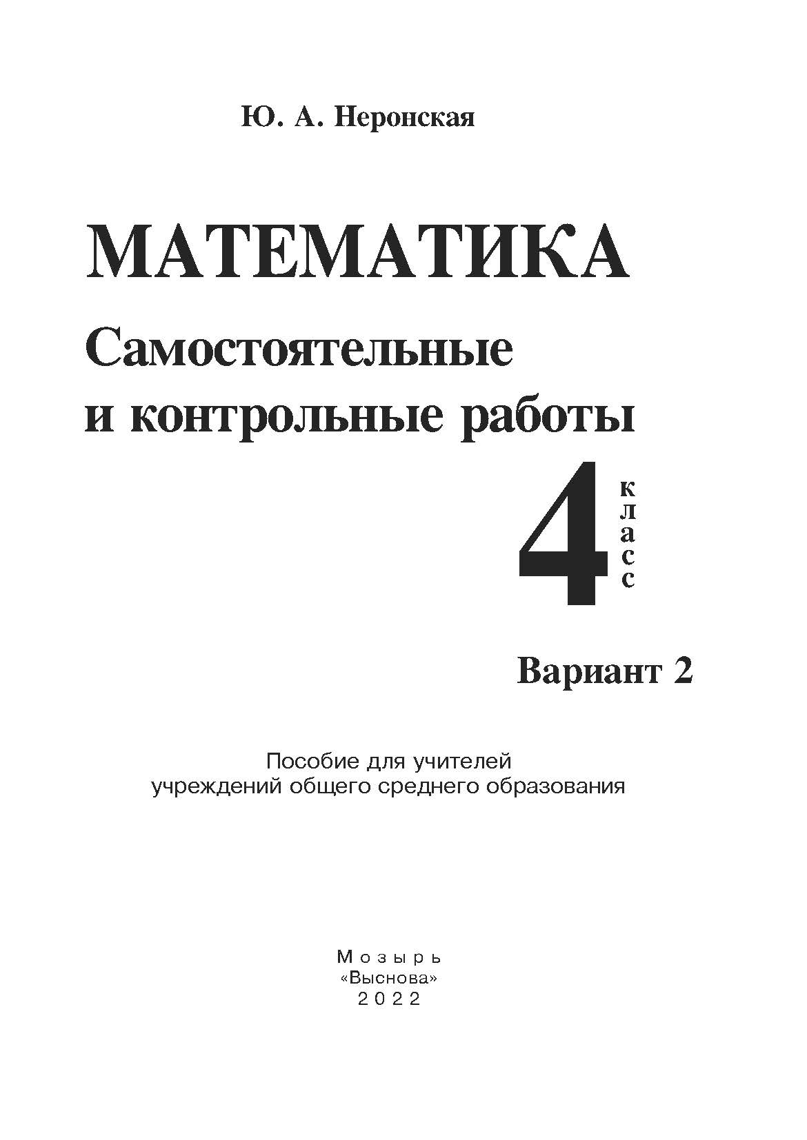 Математика. Самостоятельные и контрольные работы. 4 класс. Вариант 2 / [авт. Ю.А. Неронская]