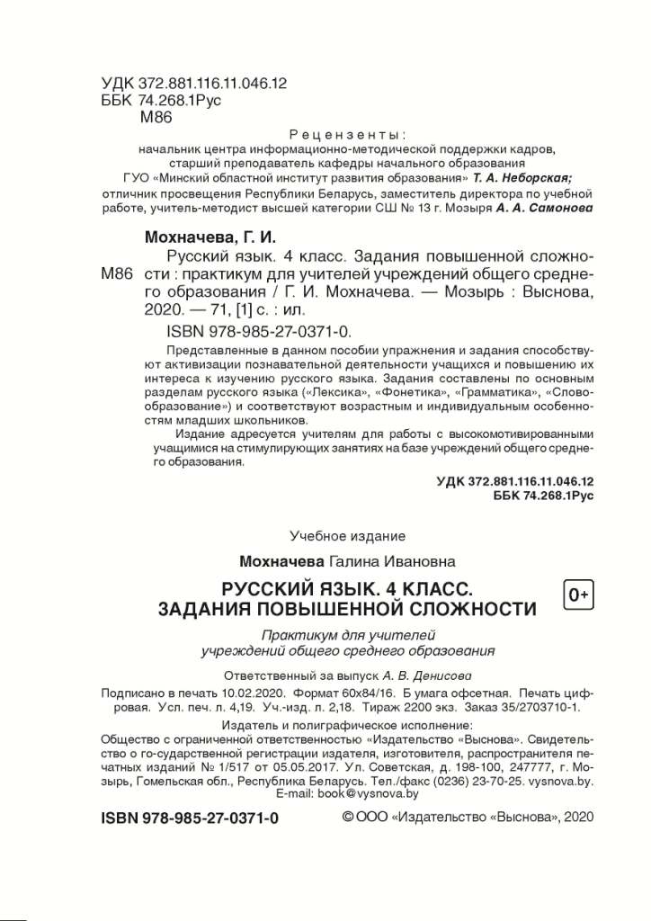 Мохначёва Г.И. Русский язык. 4 класс. Простые задания для успешного усвоения