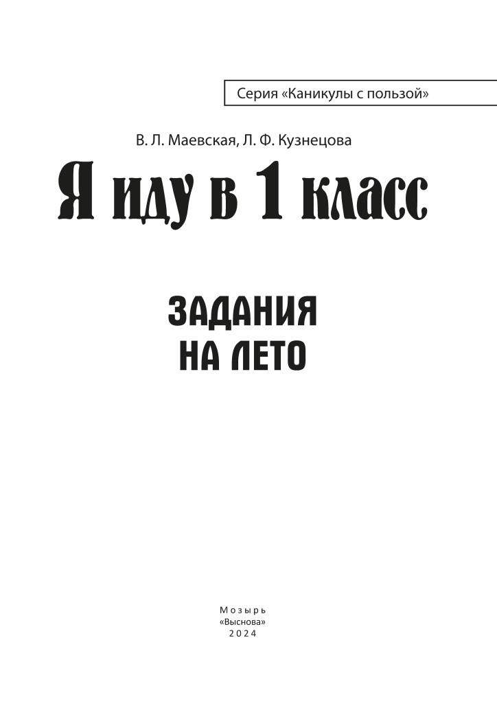 Маевская В.Л. Я иду в 1 класс. Задания на лето / В.Л. Маевская, Л.Ф. Кузнецова