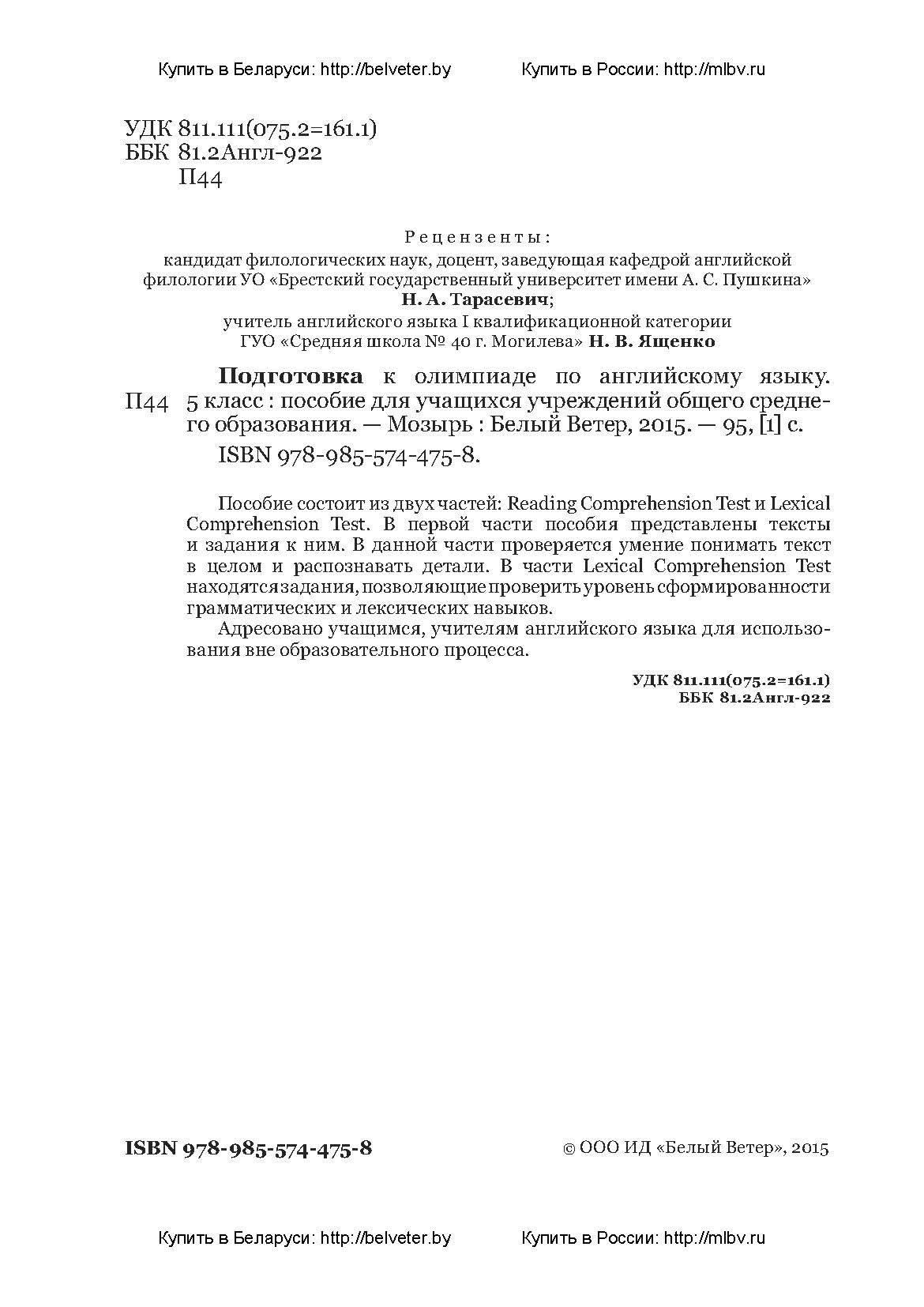 Котова Т.В. Готовимся к олимпиаде по русскому языку и литературе. 5 класс