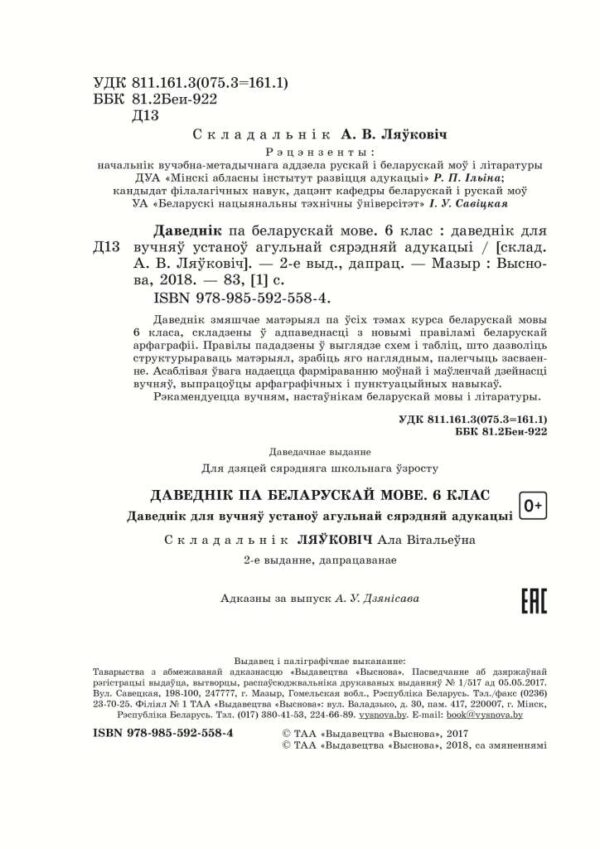 Даведнік па беларускай мове. 6 клас / склад. А. В. Ляўковіч
