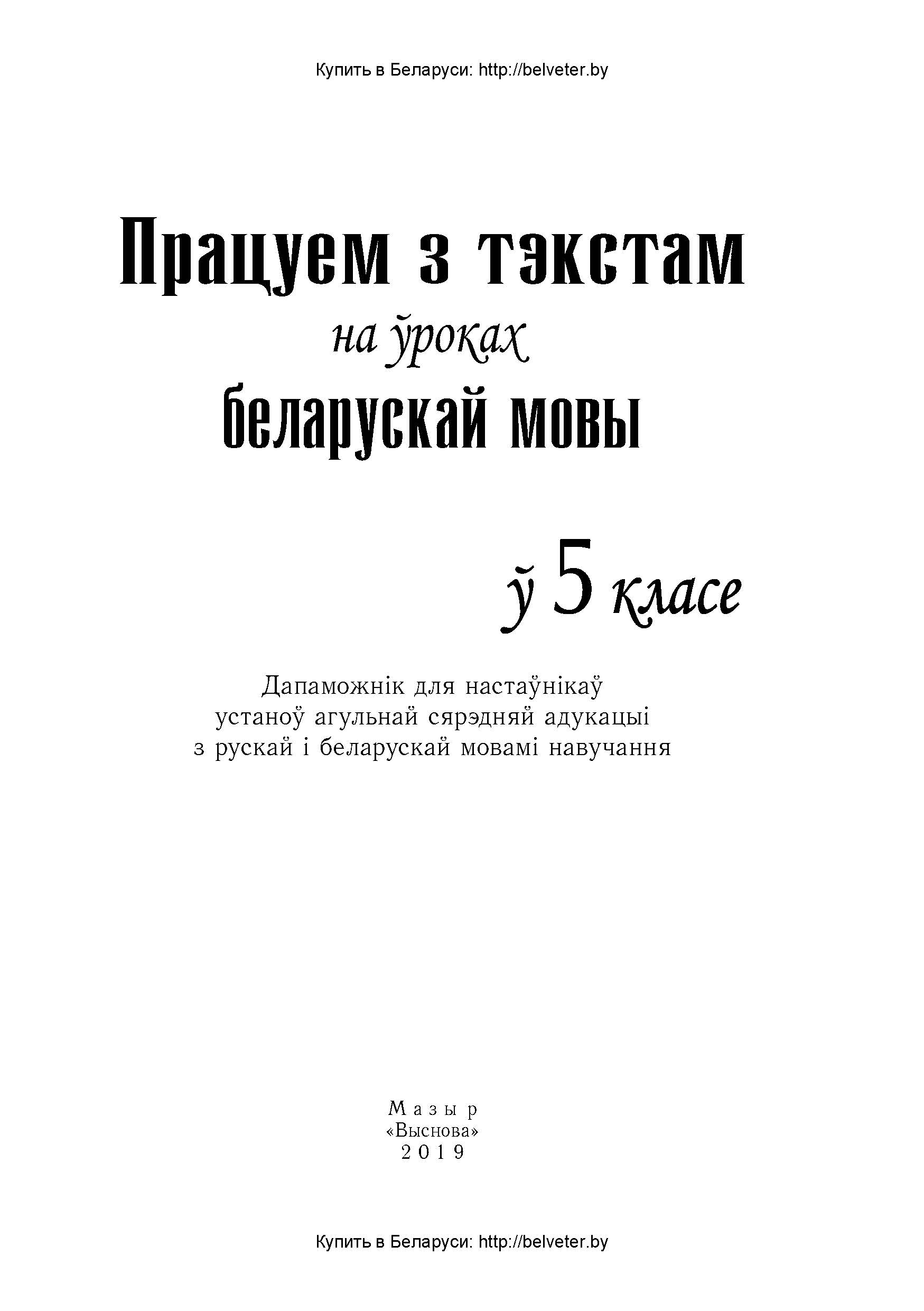 Працуем з тэкстам на ўроках беларускай мовы ў 5 класе / склад. Н. У. Сілюк