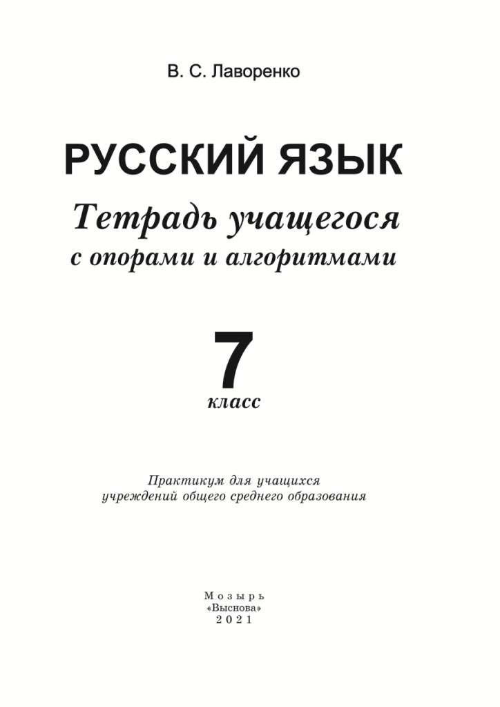 Лаворенко В.С. Русский язык. 7 класс. Тетрадь учащегося с опорами и алгоритмами