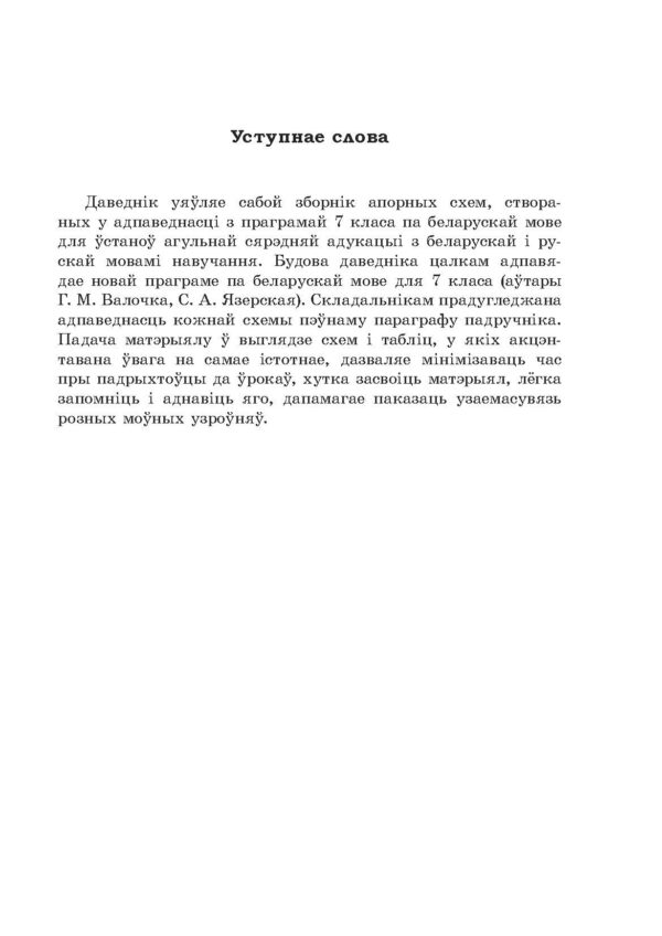 Даведнік змяшчае матэрыял па ўсіх тэмах курса беларускай мовы для 7 класа, складзены ў адпаведнасці з новымі правіламі беларускай арфаграфіі. Правілы пададзены ў выглядзе схем і табліц, што дазволіць структурыраваць матэрыял, зрабіць яго наглядным, палегчыць засваенне. Асаблівая ўвага надаецца фарміраванню моўнай і маўленчай дзейнасці вучняў, выпрацоўцы арфаграфічных і пунктуацыйных навыкаў.