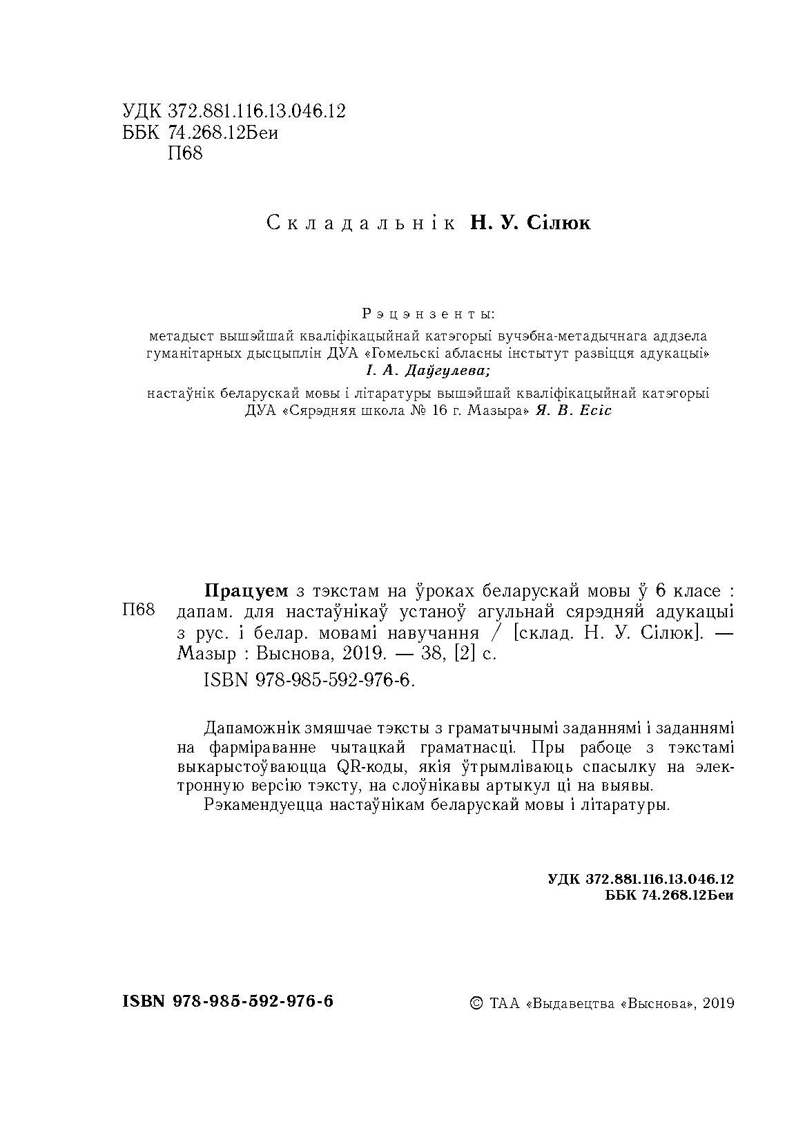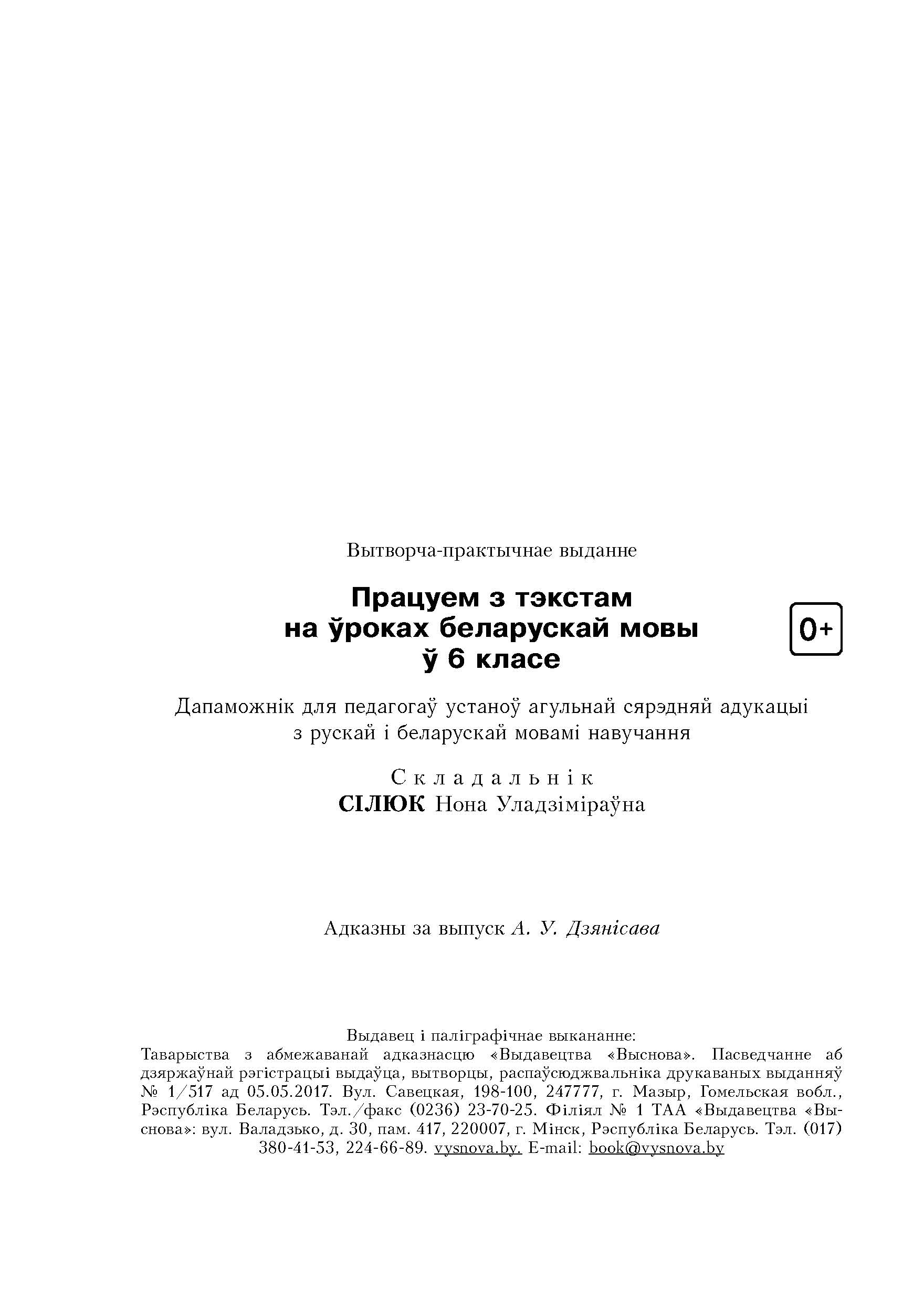 Працуем з тэкстам на ўроках беларускай мовы ў 6 класе / склад. Н. У. Сілюк