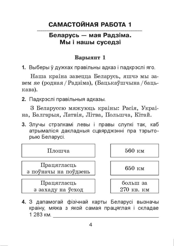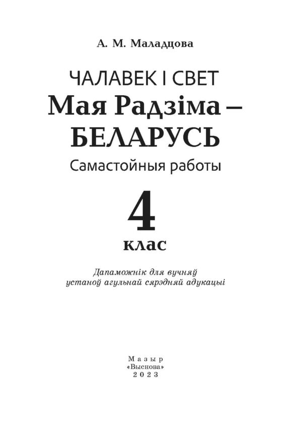 Маладцова А.М. Чалавек і свет. Мая Радзіма – Беларусь. Самастойныя работы. 4 клас