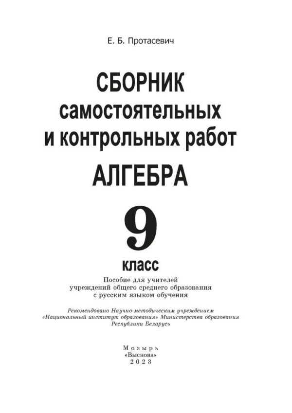 Протасевич Е.Б. Сборник самостоятельных и контрольных работ. Алгебра. 9 класс