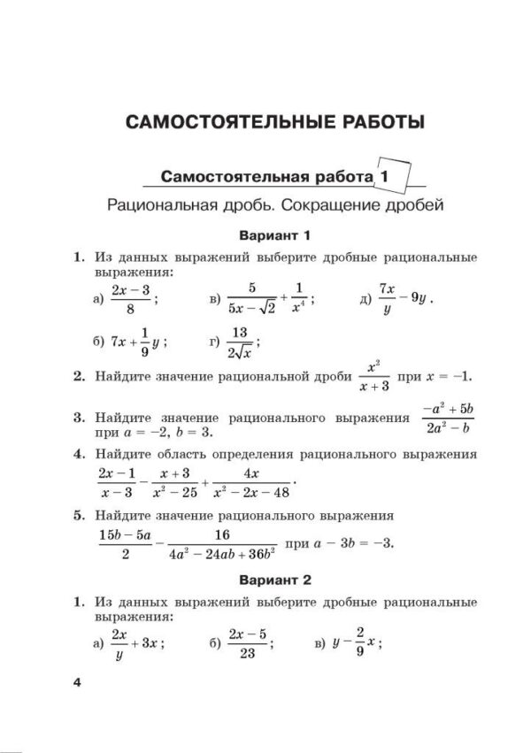 Пособие содержит 19 самостоятельных работ и 4 контрольные работы. Основной целью данного пособия является диагностика результатов обучения, выявление пробелов в знаниях, умениях и навыках по учебному предмету «Математика».