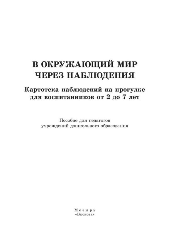 В окружающий мир через наблюдения: картотека наблюдений на прогулке для воспитанников от 2 до 7 лет / сост. Е. С. Васильева, Т. Н. Кончиц