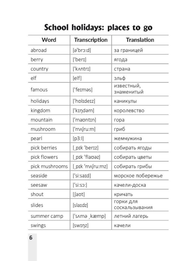 Словарь-справочник предназначен для записи и изучения английских слов, их повторения и самопроверки. Словарь уже содержит основной лексический минимум по каждой теме, изучаемой в 5 классе, дополнительно представлены страницы для записи новых слов. Каждая такая страница словаря поделена на три части (слово, транскрипция, перевод). Также в издании собраны базовые справочные данные по английскому языку — алфавит, времена, глаголы и прочее. Справочный материал подается в виде таблиц и схем для лучшего запоминания и усвоения.