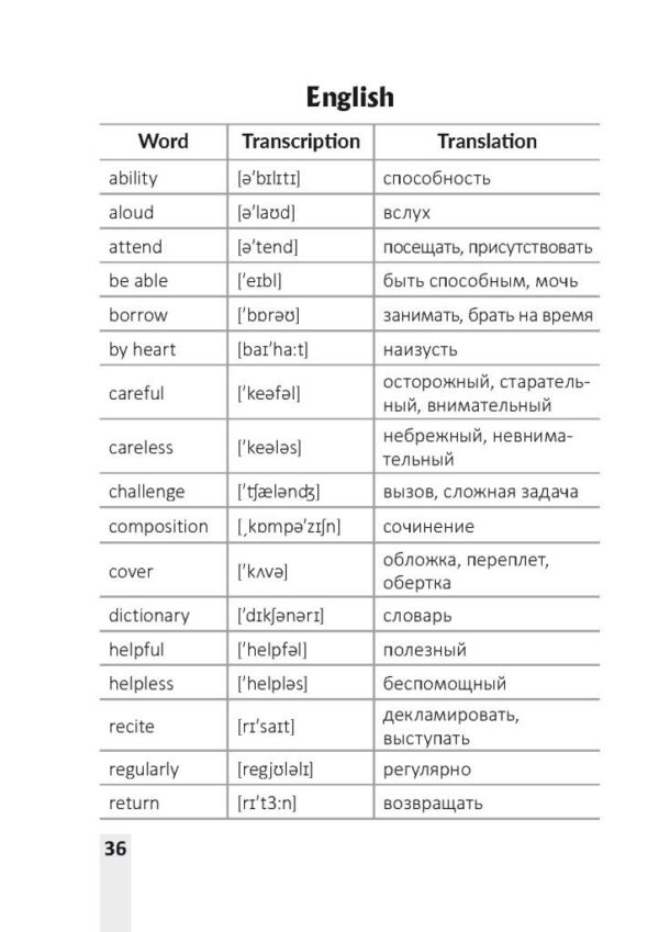 Словарь-справочник предназначен для записи и изучения английских слов, их повторения и самопроверки. Словарь уже содержит основной лексический минимум по каждой теме, изучаемой в 7 классе, дополнительно представлены страницы для записи новых слов. Каждая такая страница словаря поделена на три части (слово, транскрипция, перевод). Также в издании собраны базовые справочные данные по английскому языку — алфавит, времена, глаголы и прочее. Справочный материал подается в виде таблиц и схем для лучшего запоминания и усвоения.