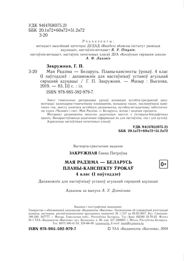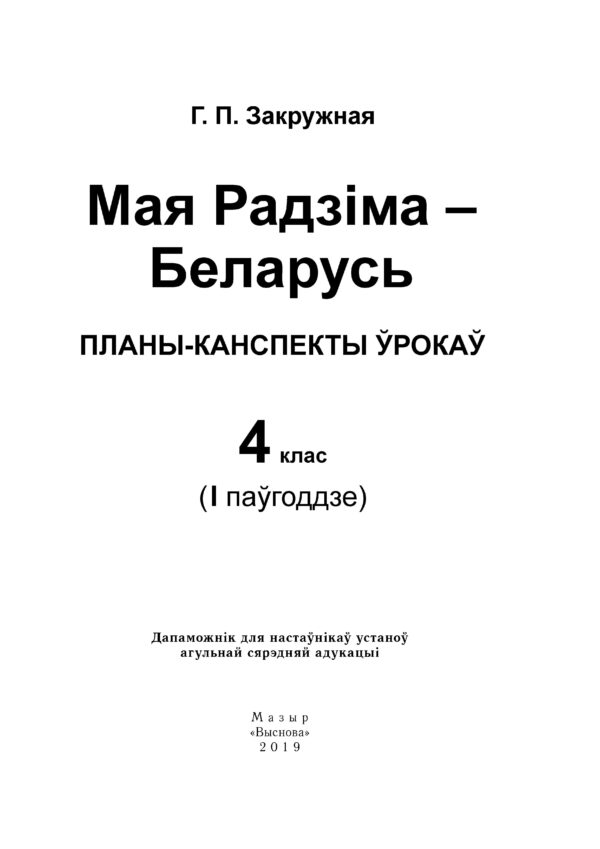 Закружная Г.П. Мая Радзіма – Беларусь. Планы-канспекты ўрокаў. 4 клас. I паўгоддзе
